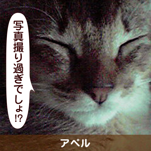 アペルくんのアップ珍しいですね。かわいいなあ、天使の寝顔ね。